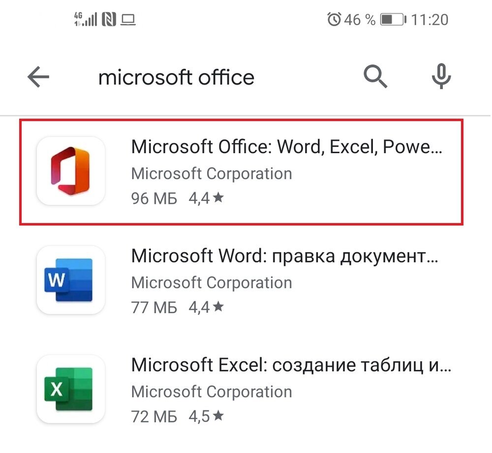 Заходим в Google Play, вводим туда Microsoft Office, скачиваем и устанвливаем объединенное приложение.