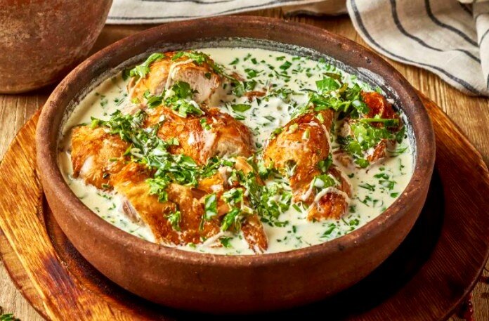 В классическом рецепте Шкмерули готовиться на кеци(грузинская сковорода из глины) и на углях