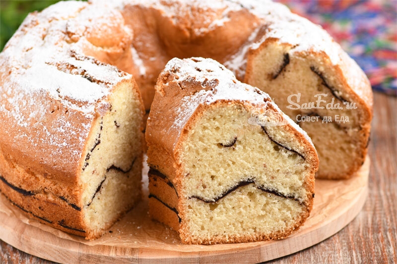Очень воздушный, нежный и вкусный пирог к чаю. Тесто замешиваю быстро с добавлением минеральной воды и сразу заливаю в форму. Его можно готовить с любыми ягодами, фруктами или вареньем. Сегодня готовлю пирог с какао, но какао не перемешиваю с тестом, а посыпаю порошком 2 слоя теста. Пирог получается нежным, пористым и очень ароматным.