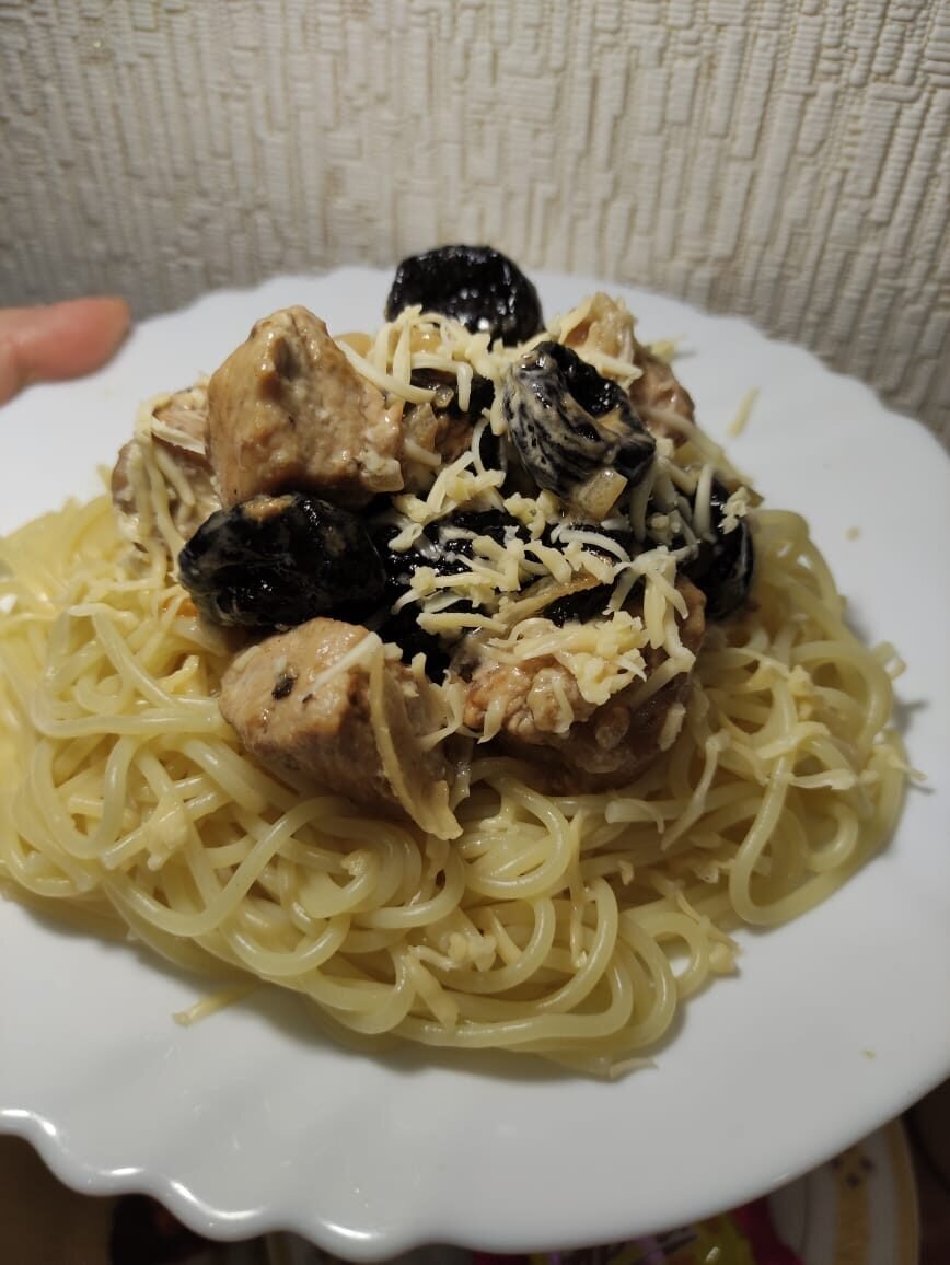3. Добавляем чернослив и сметану. хорошенько перемешиваем и тушим пару минут.