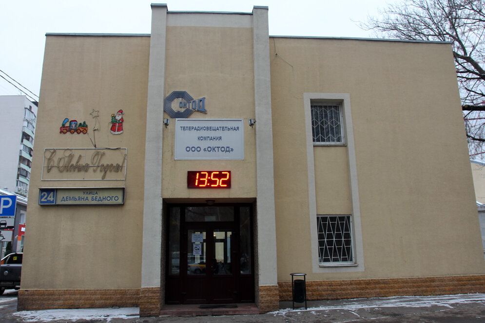 10. В октябре 1991 года на базе Ходынской радиостанции была основана первая в нашей стране негосударственная операторская радиовещательная компания – ТОО "Октод". На территории радиоцентра была возведена 150-метровая мачта, осуществлялось вещание в диапазонах FМ и УКВ: радио "Серебряный дождь", "Наше Радио", "МАЯК-24", "Радио 7", "Радио Любовь", "Радио Максимум". ТВ-вещание было представлено программой ТНТ на 35-м канале. На 34-м канале проводятся передачи цифрового сигнала стандарта DVB-T. В едином пакете передаётся цифровая версия канала ТНТ, несколько радиостанций, а также интернет-сервис СТВ. Здесь же впервые в России проводились опытные передачи Телевидения Высокой Четкости (HDTV).