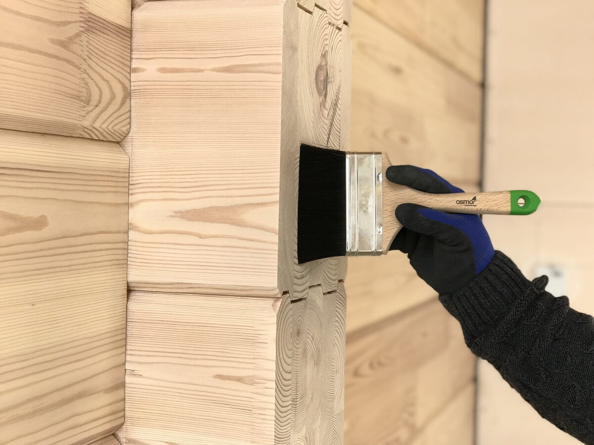 В первый год проходит основная усадка и появляются трещины, по этому нет смысла приобретать дорогостоящие составы, наша задача сделать так, чтобы дерево высыхало и не темнело.