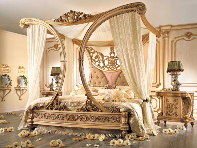 Отдыхали они летом с супругой в Испании, ну и как приличные, культурные люди ездили на экскурсии по замкам всяким. В одном из таких замков им и продемонстрировали родную сестру этой деревянной красавицы, а заодно и показали место, где всю эту красоту делают современные зодчие исключительно по старинным технологиям и эскизам. Лара не смогла устоять перед такой красотой и влюбилась бесповоротно. И, как не пытался уговорить ее, зело фраппированный ценой за шедевр, Славик, она не сдавалась. Хочу, говорит, спать на кровати как у испанской принцессы и всё тут!