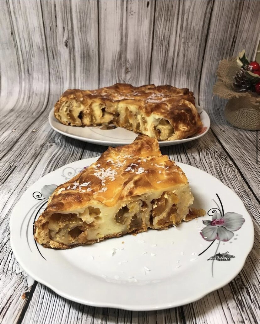 Такой пирог можно приготовить из блинчиков, но если не хочется дополнительной возни, то спасает лаваш😌