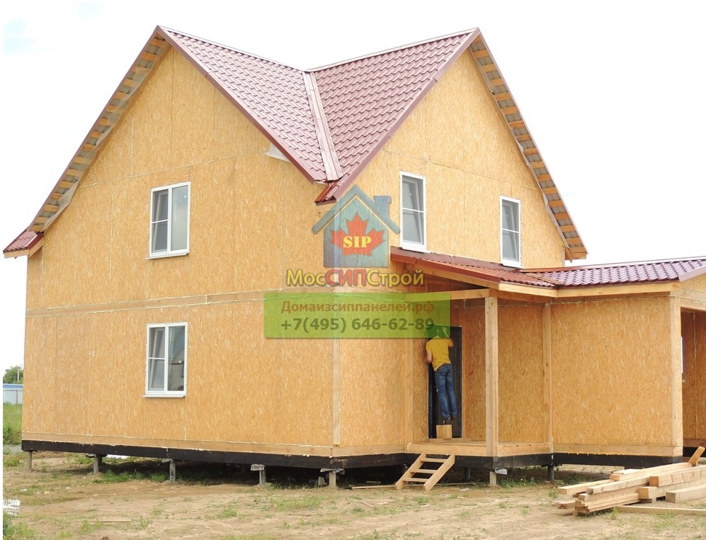 Дом представляет собой двухъэтажное здание в которое входит кухня, гостиная, С/У, котельная, гараж, 3 спальни. Фирма за 30 дней возвела здание. В стоимость работ вошли винтовые сваи, SIP-панели, металлочерепица Grand line, расходные материалы, монтаж домокомплекта,