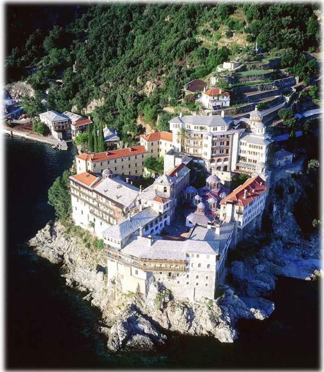 Полуостров Святая Гора, по-гречески Айон-Орос, — самый восточный из трех отростков большого полуострова Халкидики, выдвинувшегося в Эгейское море наподобие гигантской клешни. Некогда персидский царь Ксеркс повелел прорыть в самой узкой части перешейка канал для своего флота. Теперь, примерно в этом месте, проходит административная граница Святой Горы. Вытянутый на восемьдесят километров полуостров часто называют Афоном — по имени горы, венчающей его южную оконечность.