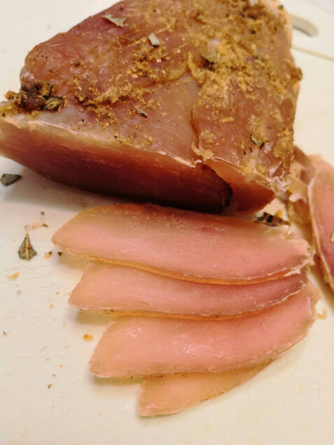 Вяленая куриная грудка с приправами. Рецепт быстрый и совершенно несложный. Разбит на два этапа: на первом этапе с помощью каменной соли вытягиваем из мяса лишнюю влагу, на втором - добавляем приправы и завялеваем мясо.