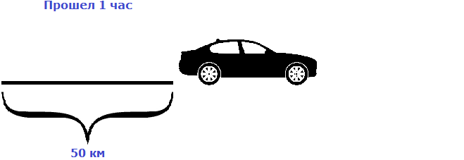 Предположим, что автомобиль двигается со скоростью 50 км/ч. Мы помним, что скорость это расстояние, пройденное за единицу времени (1 час, 1 минуту или 1 секунду). В нашем примере автомобиль двигается со скоростью 50 км/ч, то есть за один час он будет проезжать расстояние, равное пятидесяти километрам.