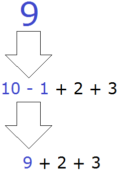 Читаем наше выражение 10 − 1 + 2 + 3 слева направо. Встречаем вычитание 10 − 1. Сразу выполняем эту операцию: 10 − 1 = 9. Полученную девятку запишем в главном выражении вместо 10 − 1
