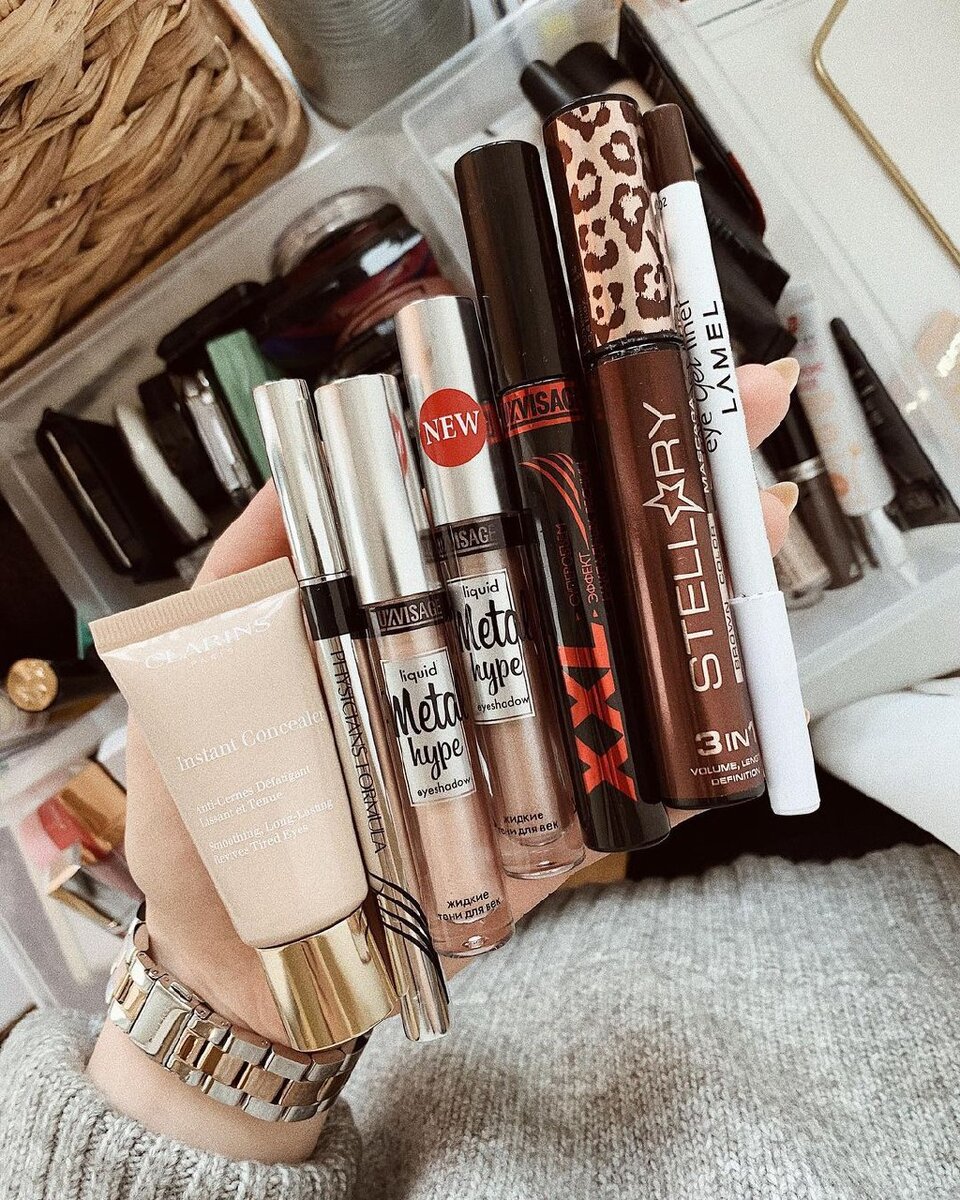 ▫️кремовые тени MetalHype от Luxvisage - на все веко и матовый нюд в складку. Это просто лучшая находка🤩 Стойкие, держаться весь день и очень красиво переливаются💫