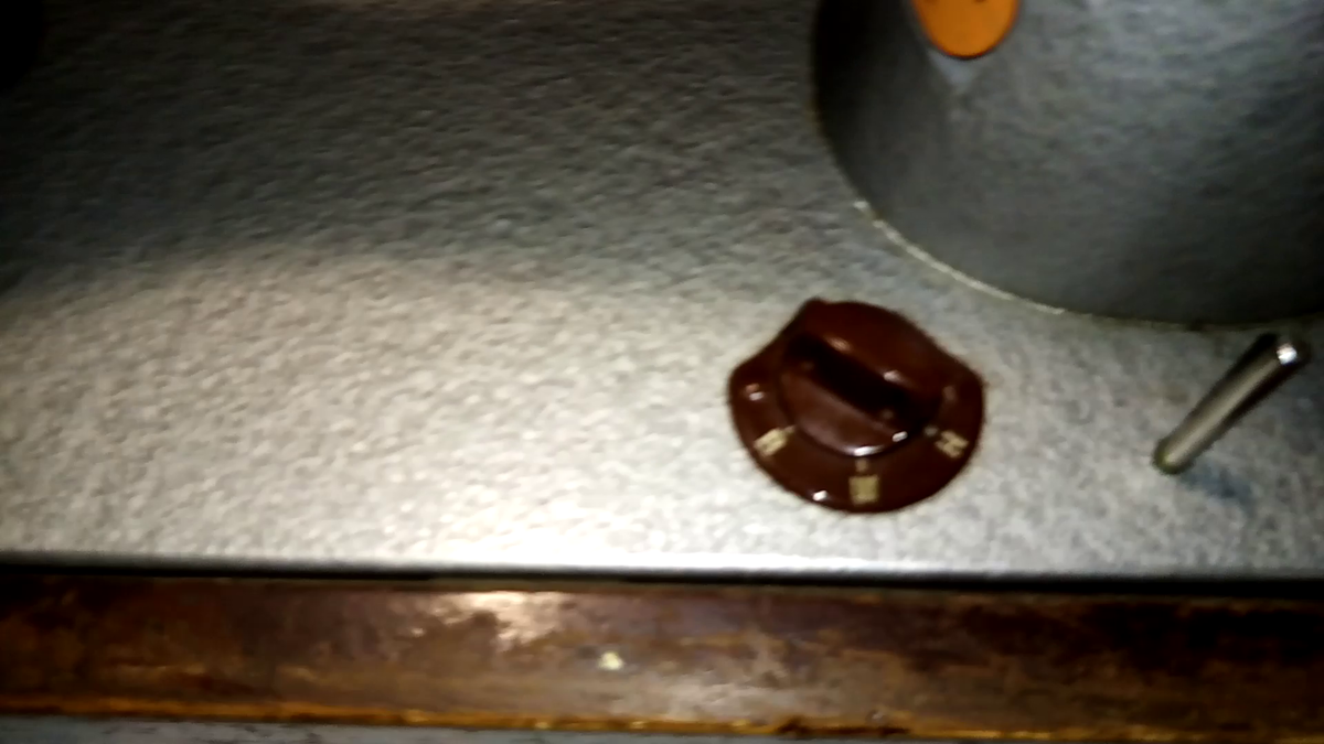 Вроде, и получается, но... Итак, еще пара причин, почему получилось плохо. Снова отсутствие швейного опыта. Каждый раз рука дергалась передвинуть материал раньше времени. Отсутствие процесса синхронизации меня с машинкой. Ну и вторая причина: передвигать пяльцы приходится одной рукой, когда вторая в это время крутит вал. Отсутствие моторчика дает о себе знать. До кучи машинка стоит в коробе, рабочая поверхность ограничена. И это то же создает дискомфорт при работе. Вариант в тумбе был бы уместнее. С горем пополам я вышил свой первый рисунок.
