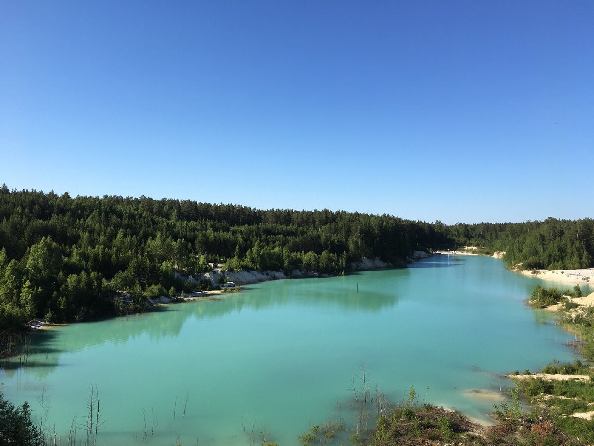 Первую остановку мы сделаем на Каолиновом карьере в Кыштыме. По-другому это место называют Уральское Бали. Почему? Да потому что вода здесь ярко бирюзового цвета, а вокруг белый песок. Недавно это место внесли в список самых необычных мест в России. Как добраться? Ехать в сторону Кыштыма, дальше есть указатели, как добраться до карьера. Дорога грунтовая, но мимо точно не проедете. Огромное количество машин и даже большие автобусы. Людей везут сюда на экскурсии. Но по факту я бы не сказала, что здесь есть что-то примечательное. От воды идёт неприятный запах. Особо смелые купаются, хотя в такой воде купаться нельзя. Если наглотаетесь воды, то камни в почках обеспечены. Кто-то жарит шашлыки на берегу? Только какой в этом смысл, если у нас столько замечательных чистых озёр. Стоять наверху достаточно опасно, потому что берега карьера мягкие и неустойчивые и в какой момент времени это все может обвалиться, никто не знает.
