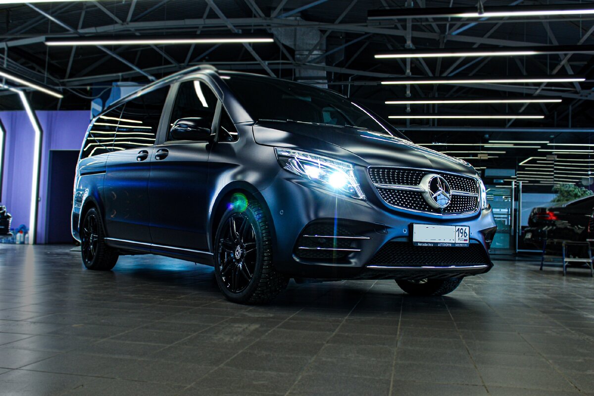 Купив минивен Mercedes, владелец решил сразу же защитить его антигравийной плёнкой, но не простой, а матовой.