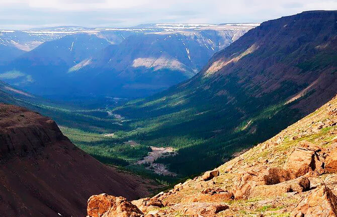 Открывает наш список самых красивых мест в России Плато Путорана – необъятное и в то же время, практически не затронутое цивилизацией базальтовое плато, расположившееся в Восточной Сибири. Тектонические трещины заняли реки и озера, которые в длину достигают 150 км, а вглубь – около 400 м. Эти озера хранят невероятное количество запасов чистой, пресной воды. На плато разместилось около 25 тысяч озер, причем 18 из них имеют площадь более 100 км.кв. Еще эту пейзажную территорию украшает огромное количество красивых водопадов, которые достигают высоты более 100 метров.
