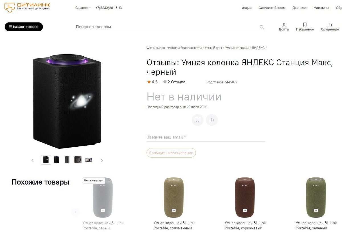 Редакция CNews убедилась, что на 22 января 2021 г. новую колонку «Яндекса» действительно нельзя было купить в наиболее известных розничных сетях. В «Ситилинке», «М.Видео» и DNS «Станции макс» нет в наличии, и даже в старейшем российском онлайн-магазине «Озон» приобрести ее пока не представляется возможным. Отсутствует колонка и в магазинах «Связного», а также у операторов связи МТС, «Мегафон» и «Билайн».