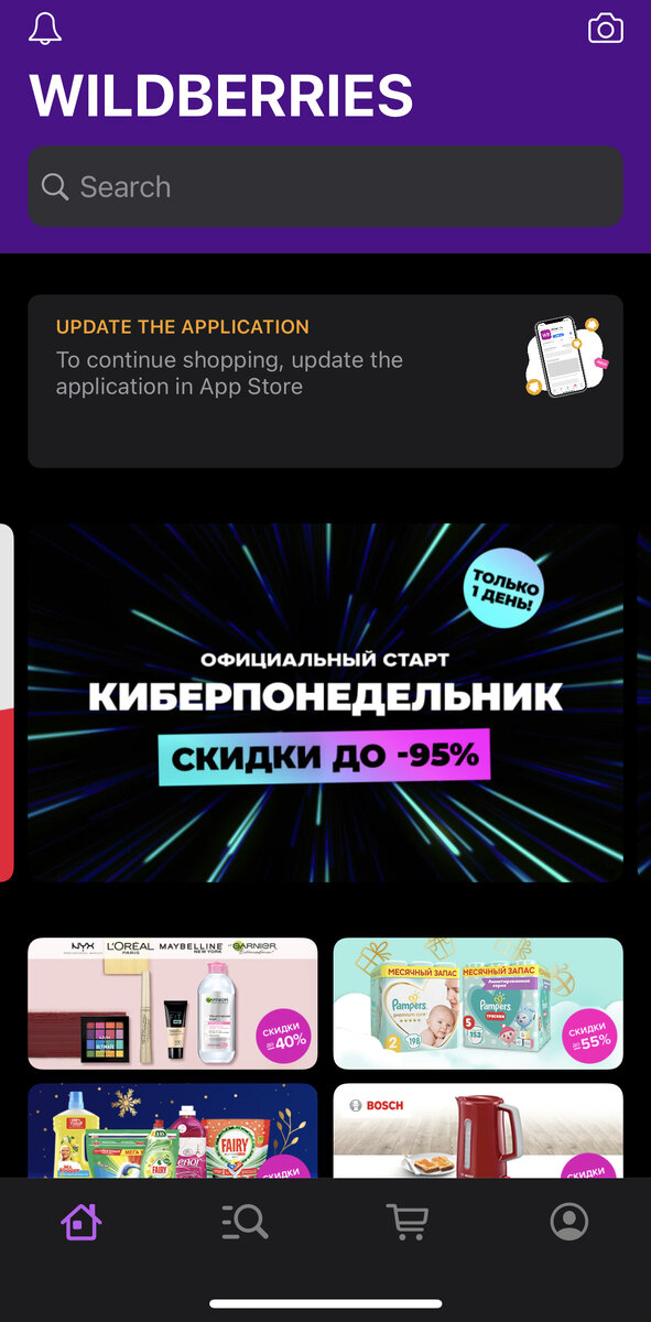 Захожу я, значит в приложение - заказать что-нибудь по мелочи. Классическая ситуация. А тут на пол экрана выдает: Официальный старт, КИБЕРПОНЕДЕЛЬНИК. Скидки до - 95%.