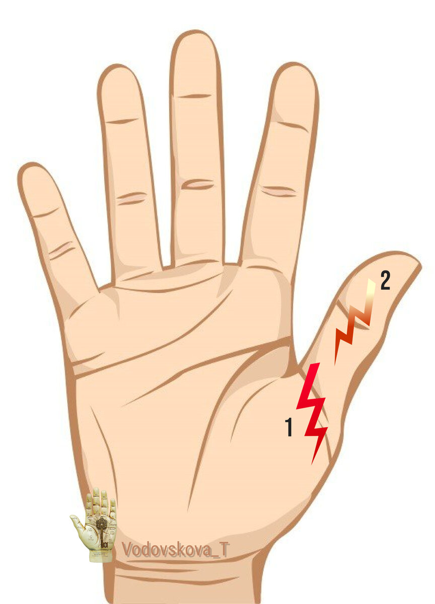 1. Продольный порез, захватывающий холм Венеры и первую фалангу пальца говорит о том, что пришло время для трансформации и применения нажитого и полученного опыта, для развития себя, для процветания и успеха придется приложить усилия, во многом изменив свои убеждения, тактику, поведение. В частности, это касается семьи и отношений с близкими. А также подобная рана трактуется и в сфере карьеры и работы как период защиты своих проектов, бизнеса, активной деятельности; как знак того, что не нужно сидеть на месте, а необходимо принимать решения и действовать, заявить о себе и своих способностях, умениях. Поверхностный порез или ссадина может указывать на появление соперника, конкурента в делах и в семейной жизни, но в итоге вы одержите победу и удачно разрешите все споры.