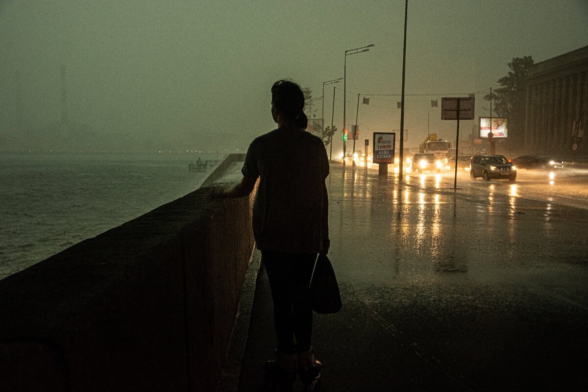 Как то раз решив прогуляться по окрестностям моста Александра Невского в СПб я попал под сильный шторм. После безуспешных попыток поймать машину я смирился и спрятался под мостом, не забывая щёлкать фотоаппаратом.