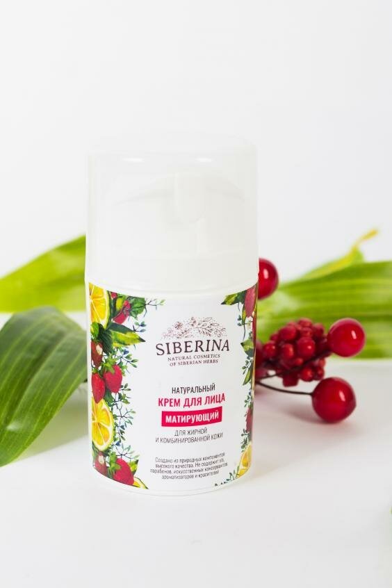 Крем для лица "Матирующий" выравнивает и улучшает текстуру кожи, снижает выработку кожного сала и сужает поры. Увлажняет, способствует уменьшению воспалений, восстанавливает защитный барьер кожи и радует длительным матирующим эффектом.