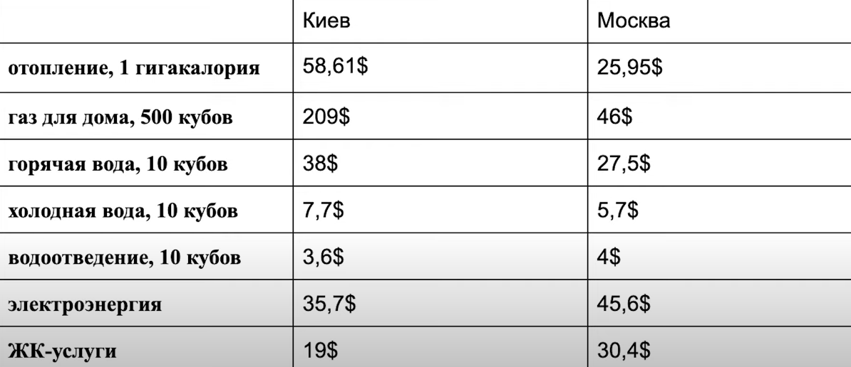 Тарифы я перевел в доллары для простоты расчёта чтобы не путаться между гривнами и рублями. Это средние цифры по разным районам городов и разных людей, а так же официальные данные правительства.