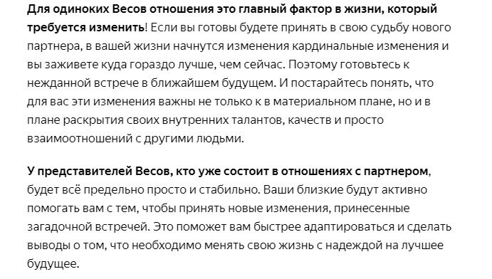 Сегодня наш гороскоп будет посвящён одиноким Весам. В их судьбе произойдут кардинальные изменения в ближайшее время. Судя по расположению планет их ждёт изменение линии жизни и прекращение одиночества. Пришедший на их путь человек сможет кардинально повлиять на их судьбу и помочь начать новую жизнь, раскрывающую скрытые таланты Весов. Таким образом, вам необходимо хорошенько подготовиться к