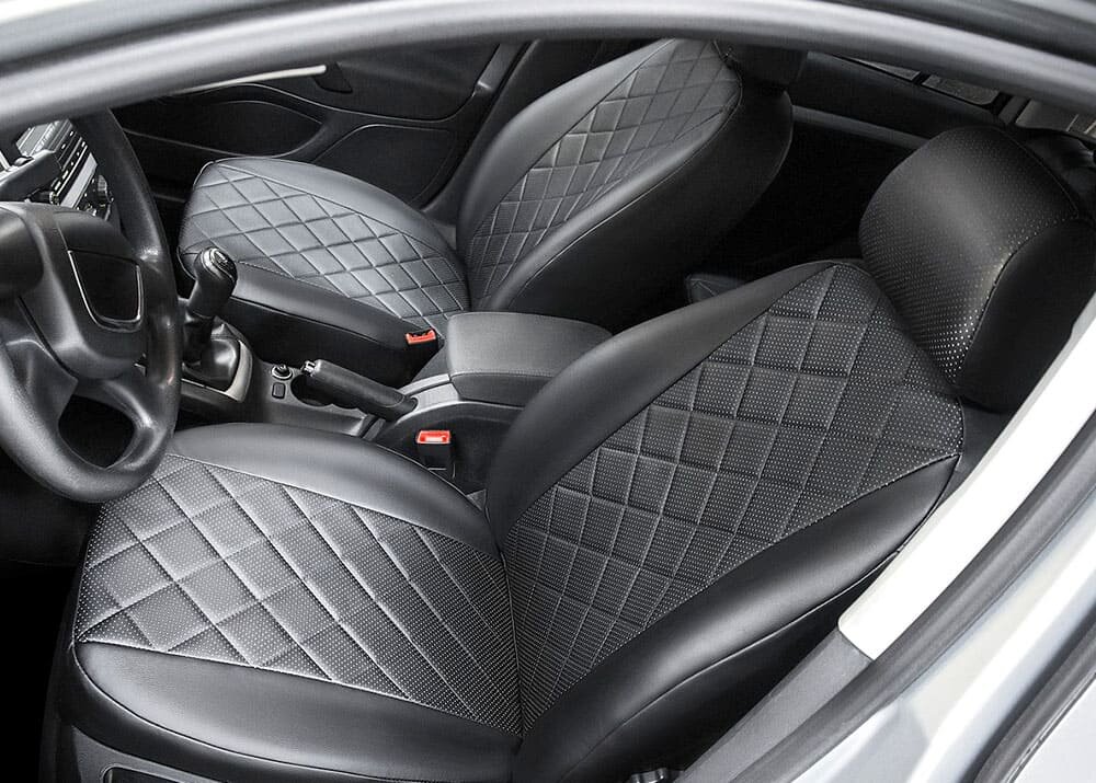 В среднем, если говорить о массовых моделях из кожзама (ну или можно использовать более модное нынче слово «экокожа»), стоимость составит порядка 3000 рублей за комплект.