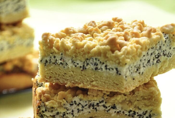 3. Для начинки смешиваем творог ( у меня пачка мягкого творога), сахар, сметану и мак. Если любите послаще, добавьте сахару.