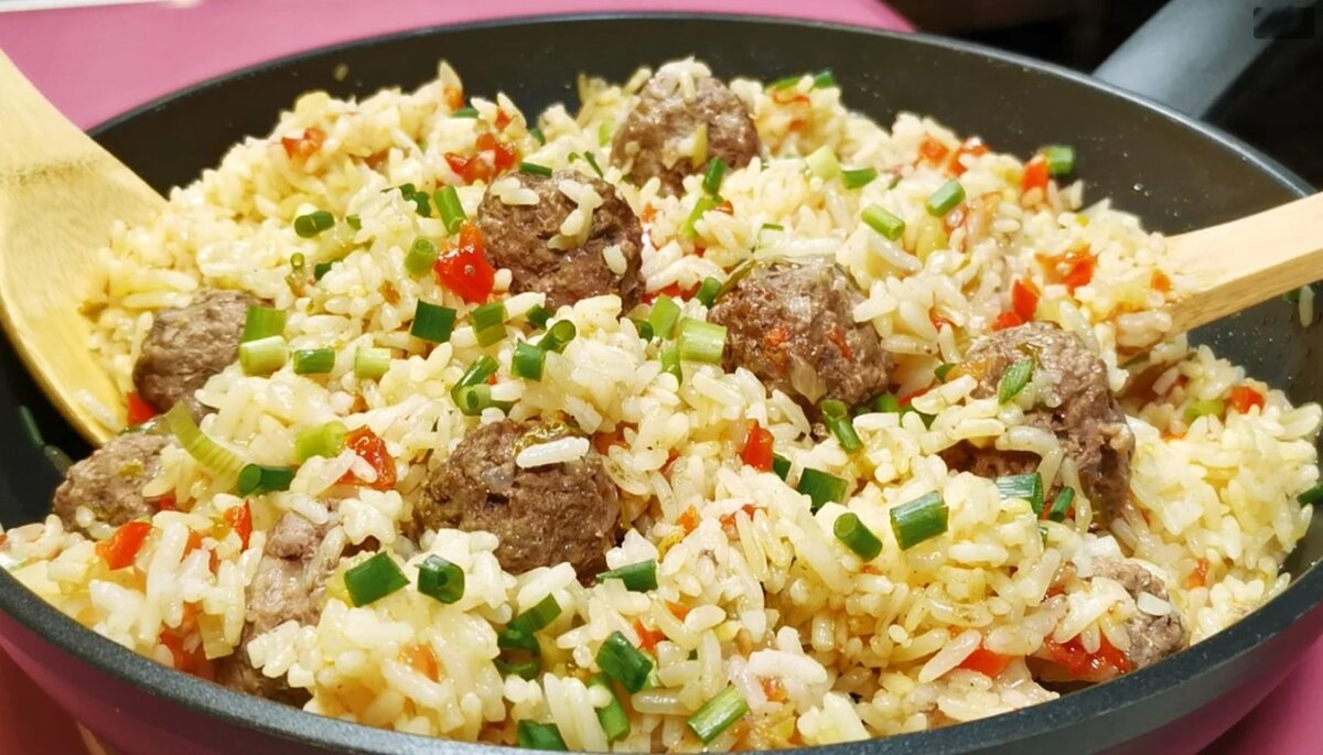 8) Теперь самое время все перемешать! После этого выключите плиту и оставьте блюдо настаиваться под крышкой еще 10 минут. В общем-то этот рецепт очень напоминает процесс приготовления плова! Перед подачей обязательно украсьте рис с тефтельками свежей зеленью!
