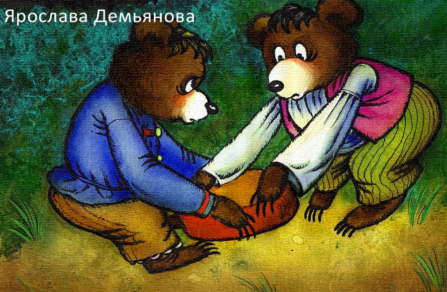 Она отпустила своих детей и наказала, чтобы они никогда не ссорились и всегда были вместе. Шли медвежата долго. Когда братья