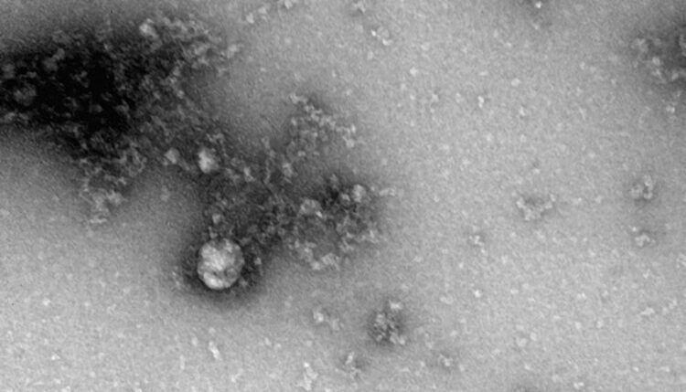 Снимок получен с помощью трансмиссионного электронного микроскопа, для этого пришлось увеличить объект в 100 тысяч раз, сообщает пресс-служба Роспотребнадзора. На фото видна вирусная частица округлой формы диаметром около 140 нанометров.