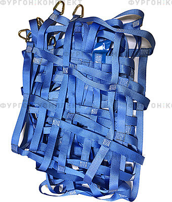 Сетка выдерживает до 1000 кг нагрузки благодаря стропам толщиной 25 мм. Ячейка 150 мм делает сетку универсальной для перевозки больших и малых грузов. Крепление