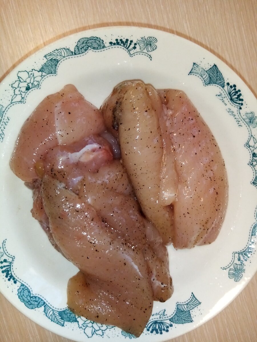 1. Филе куриной грудки. У меня были заготовлены полуфабрикаты для отбивных. Один из пакетиков я и использовала.