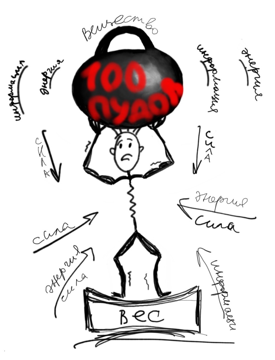 Люди набирают лишний вес, накапливая в своём теле террабайты необработанной, неосвоенной информации – они борются с лишними килограммами, тогда как по факту ВЕС – это вовсе не килограммы – это СИЛА, с которой тело воздействует на опору, препятствующую его падению! (Физика, 7 класс)