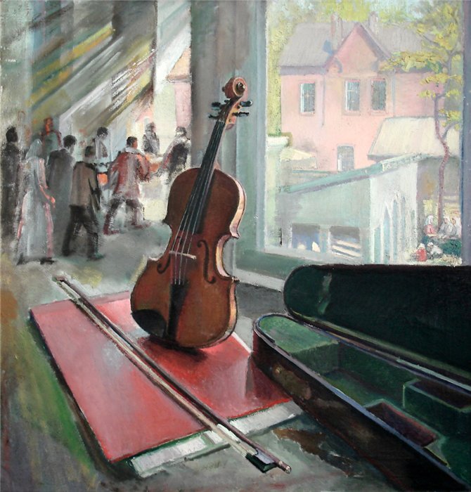 На мой взгляд, картина "Несыгранная скрипка" вобрала в себя и отразила всю боль мастера, душевную и физическую, которую только может испытывать творческий человек, не найдя поддержки. На обороте холста надпись, сделанная художником: "Жибинов. Несыгранная скрипка. Последняя работа".