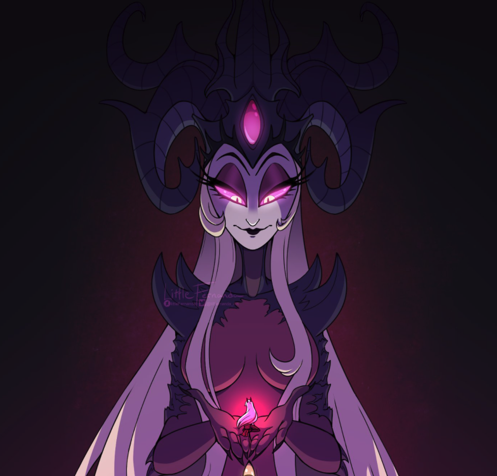 Слаанеш. Вот тут очень сложно. Это розово-пурпурно-фиолетовое нечто, способное исполнить самое похотливое желание. Угостить самым лучшим алкоголем. Дать все богатства мира. И ты не поймёшь, что попал, пока не будет слишком поздно. Картинка в голове странная — всё же, в моём образе доминирует женщина с самым чувственным голосом, который я слышал. Сложно передать. Как вы себе представляете Богов Хаоса, м?