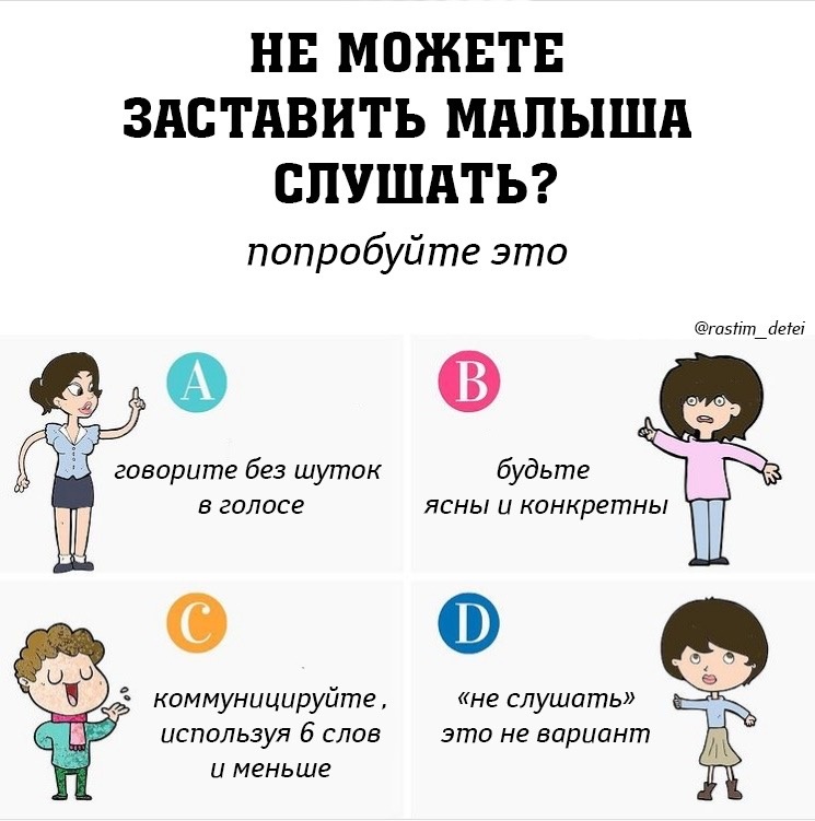 -Мы бы сказали, что не слушать - это самое первое в списке жалоб родителей. Давайте быстро рассмотрим проблему, начиная с того, что не следует делать: