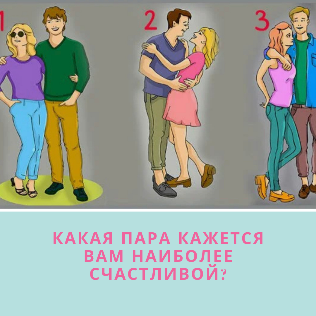 Выберите любую из трех пар на картинке в карусели, выбирайте ту, которая по вашему мнению самая счастливая.
