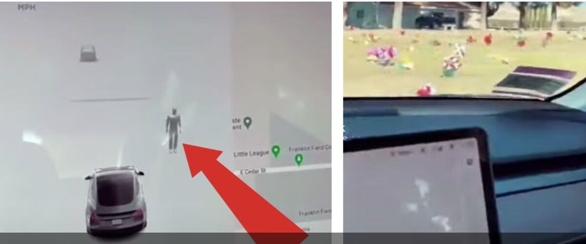 Автор видеоролика находился на кладбище в своём Tesla Model 3 с активированной функцией автопилота, когда на экране появилось схематическое изображение человека