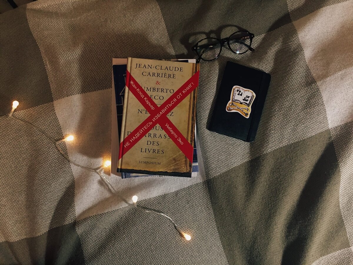 Очень хочется вернуться к "Источнику эха", но руки сами тянутся к "Не надейтесь избавиться от книг". Очень хочу, чтобы Эко в этом году стало больше. А еще, как бывшему сотруднику книжного магазина, будущему сотруднику книжного издательства и как постоянному читателю, мне нужно авторитетное мнение, чтобы быть уверенной, что книги, а соответственно мои работа и хобби, никуда не исчезнут. Хотя в первую очередь, конечно, стоит задаться вопросом - что есть книга? Физический объект или текст?