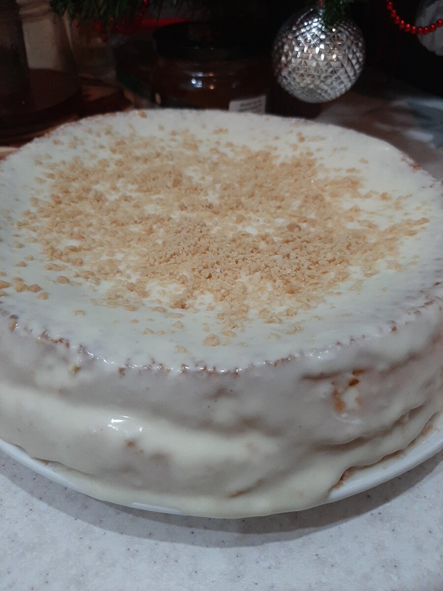 Солёный арахис перемалываем в блендере до мельчайшей крошки и посыпаем готовый торт.
