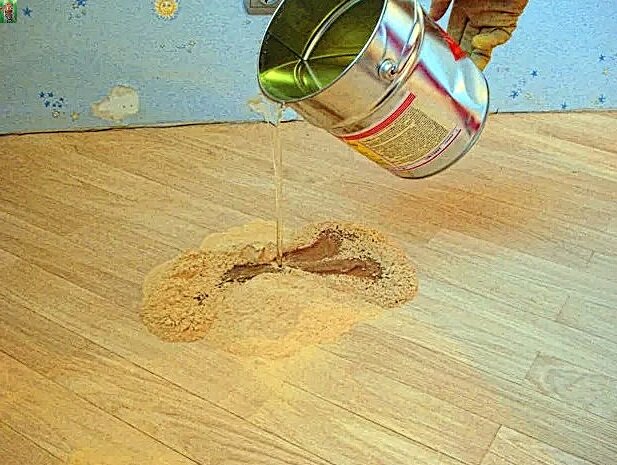 - Клей должен полностью пропитать опилки и при высыхании будет очень твердая масса. Если клей попал на кожу, то быстро размешайте столовую ложку соли с тёплой водой и замочите в нём палец.