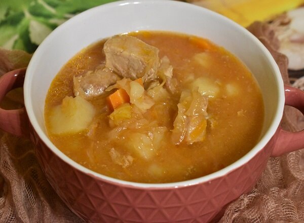 Борщ с квашеной капустой – один из моих любимых зимних супов. В нем идеально сочетается сытность свиного мяса, сливочная мягкость бульона и кислота капусты. Особенно хорошо готовить такие блюда после праздников с их застольями и неизбежным перееданием.
