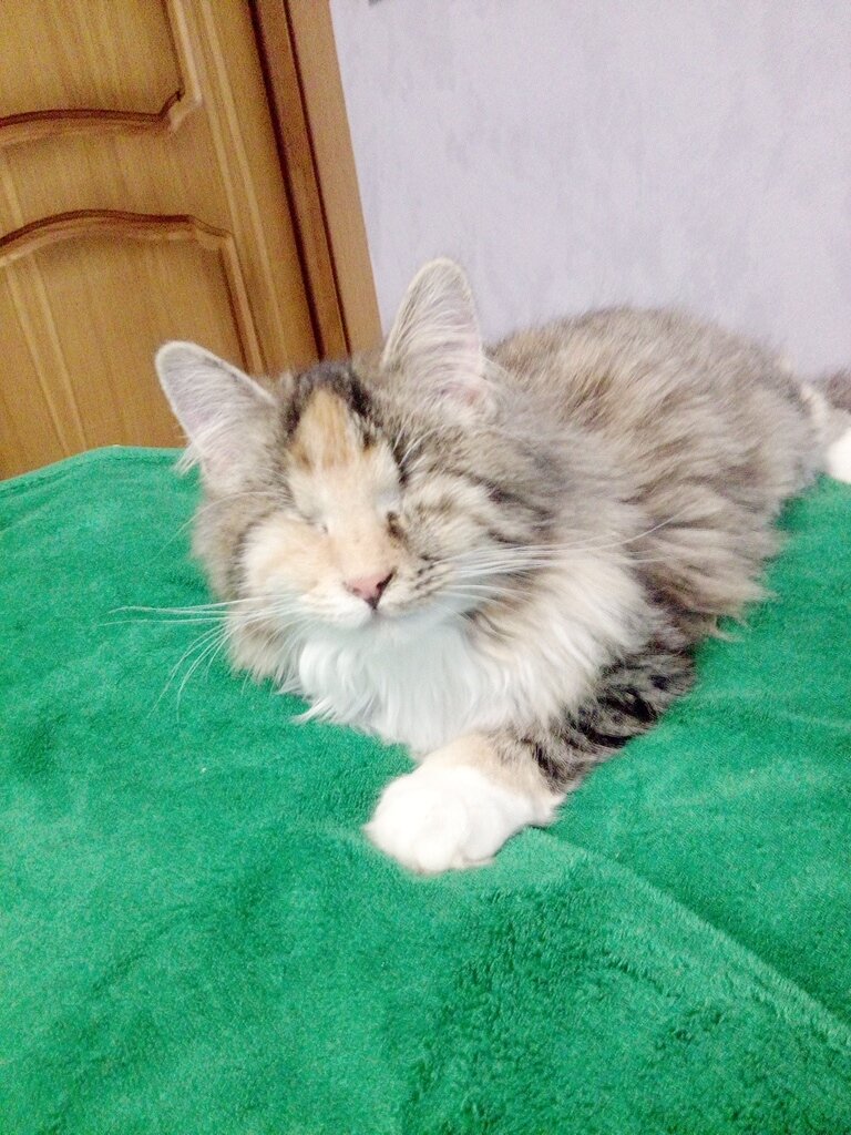 У меня для вас просто сногсшибательные новости! 11 января наш волонтер Ирина Сарана повезла в Москву нашу красавицу и самого большого героя прошлого года - малышку Ною! Ту самую, над которой поиздевались детки, на которую не обратили внимания их родители и только одна женщина дала ей шанс! Сейчас это пушистый, красивый, здоровый (правда со своими известными особенностями) котенок! А какой она была еще в начале октября, никто не давал 100% гарантии, что она вообще справится: Котенок Ноя просто шла на голос детей...