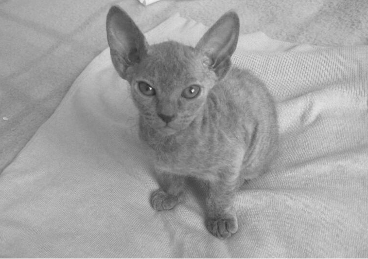 Котенка мы назвали Фараоном. Он рос подвижным, смышлёным, любопытным, несколько агрессивным, когда дело касалось пищи. Со временем волос и складок на теле Фараона становилось все меньше, по мере роста котенок становился красивее, этакий Бенджамин Баттон. По характеру – котопес, с замашками попугая, любит забраться повыше (плечо тоже подойдет).
