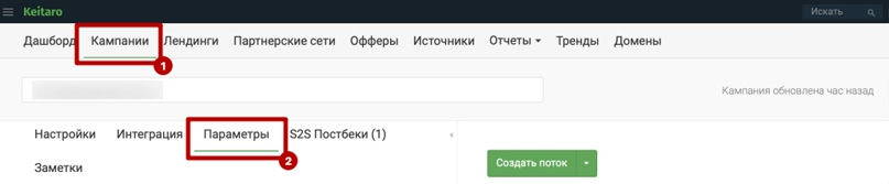 - Открываем трекер — Кампании — Выбираем вашу кампанию — Параметры