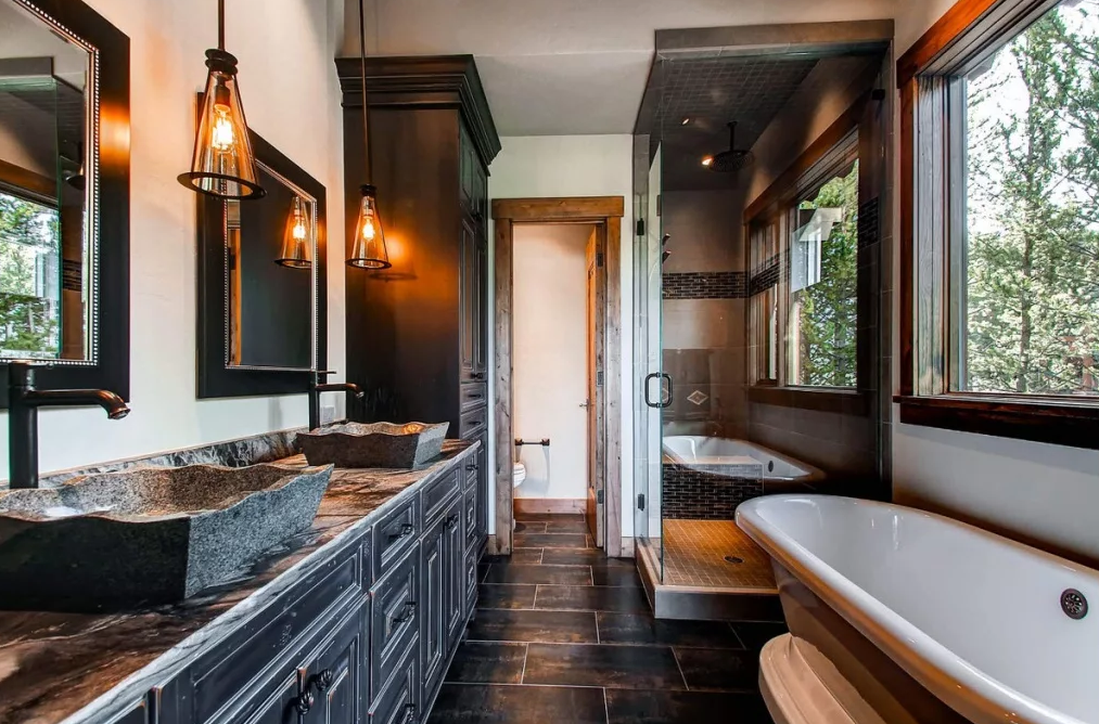 Для пола отлично подойдет плитка, имитирующая натуральное дерево. Покройте стены кирпичом или просто покрасьте водостойкой краской - такая подготовленная ванная станет отличной базой для проекта в стиле кантри.