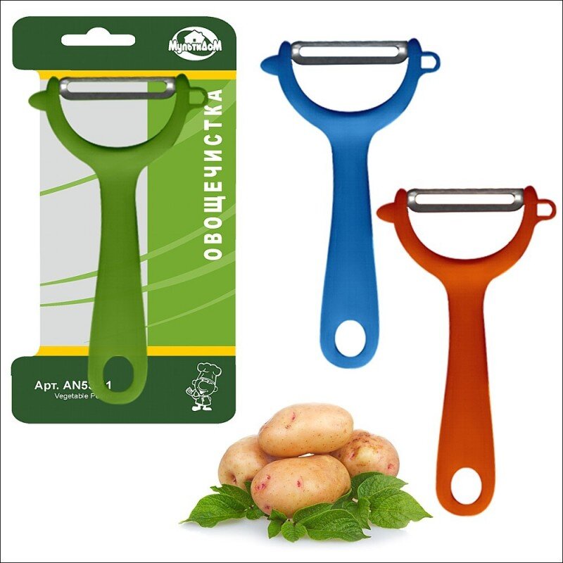 Из названия понятно, что это прибор для срезания кожуры с овощей и фруктов. Особая конструкция девайса с острым лезвием позволяет экономно удалять верхний