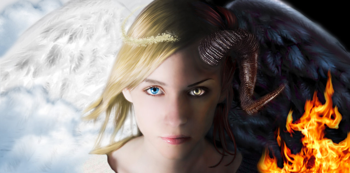 Все мы состоим из двух противоположностей, которые постоянно борются между собой: чёрное и белое, инь и янь, добро и зло. Говорят, у каждого человека на плечах сидят ангел и чёртик, которые нашептывают нам решения. Иногда побеждает один, иногда — второй.