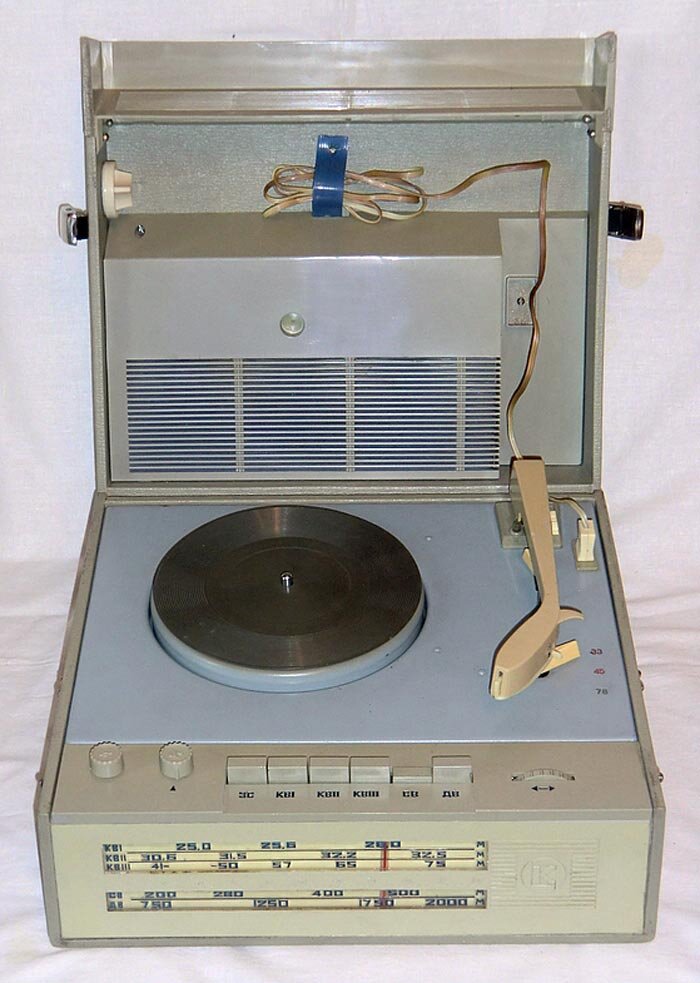 День добрый! Большинство людей сейчас воспринимает винил как увлечение аудиофилов, а проигрыватели винила как серьезные устройства. В эпоху когда не было ни MP-3, ни CD, ни даже кассет люди всё равно любили шашлыки и поезди на природу, а какой отдых без музыки? Радио может подвести с репертуаром, да и разнообразие станций совсем не баловало. Любимая музыка должна быть всегда под рукой. Для таких целей разрабатывались и производились портативные аудиопроигрыватели винила с радиоприёмниками - " переносные радиолы". И хоть весить они могли под 8 килограмм, для того времени это было великолепно.