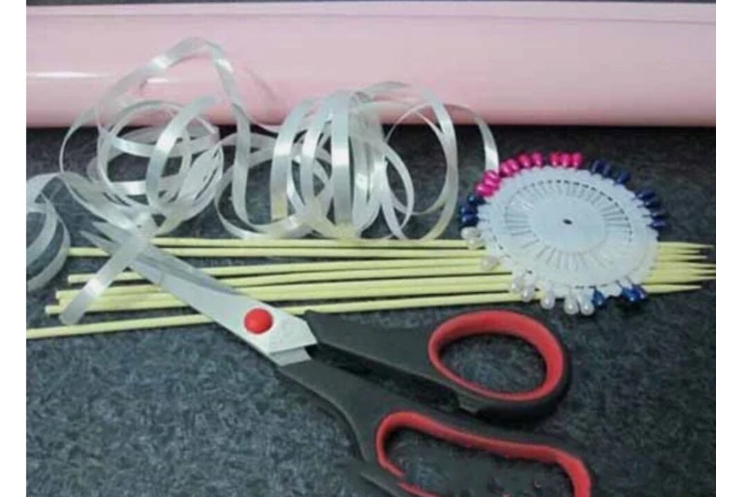 Хочу предложить необычное поделку, которую легко сделать дома самостоятельно — букетик. Но он будет не такой как обычно, а выполнен из носков или мужских платочков. Чтобы такой выполнить понадобится немного материалов, а именно деревянные палочки, бумага, английские иголочки, ножницы и конечно же то, что хотите подарить, к примеру носочно-чулочные принадлежности.